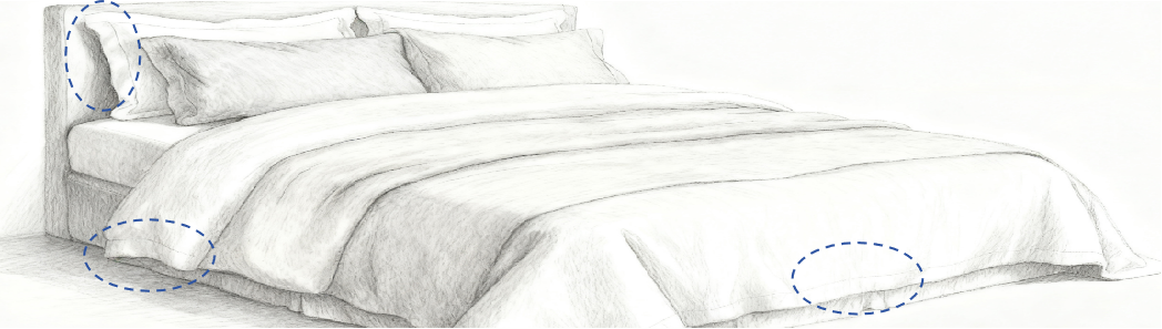 Cotton and poly-cotton with multiple densities. Egyptian cotton or Supima available on request.